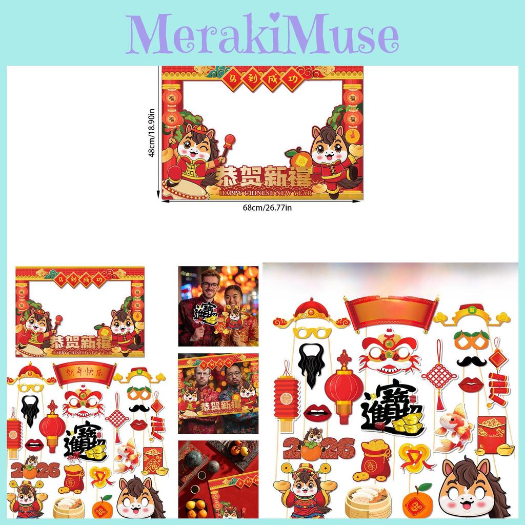 Chinese New Year Paper Photo Booth Props Set With Festive Horse Frames For Celebration Events