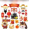 This set features 25 paper photo props and a decorative frame, designed for festive celebrations. Made of durable paper, each prop measures approximately 6 inches in size, featuring vibrant colors suited for holiday events. The set supports lively photo sessions during Lunar New Year and spring festival parties. Easy to clean with a damp cloth, these props support engaging group photos and event decor.