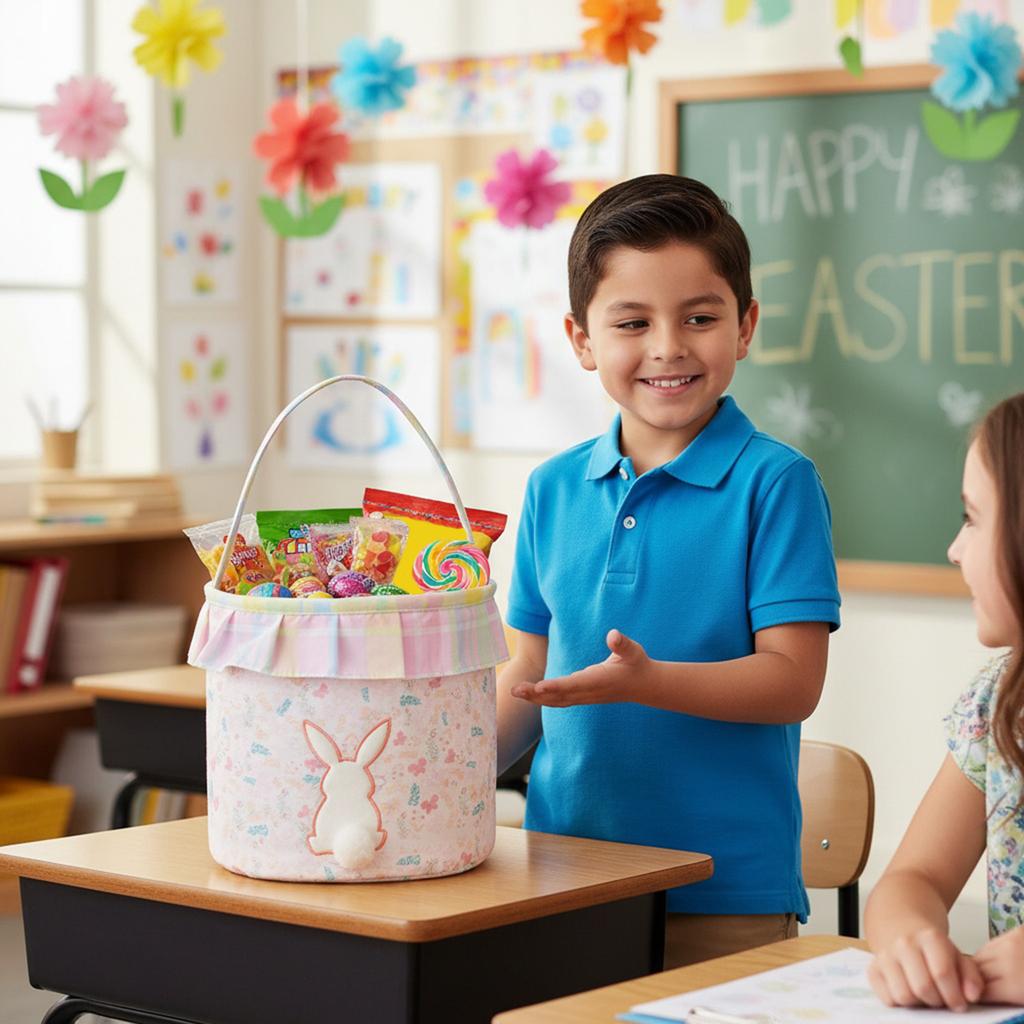 Floral Bunny Storage Bucket Reusable Decorative Egg Hunting Bags Rabbits Monogrammed Storage Bag for Newborn Baby Birthday Gifts