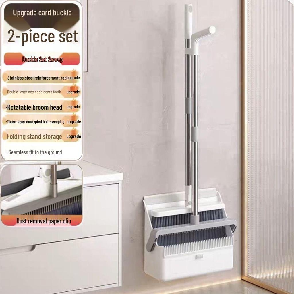 Складной набор "Метла и совок" с мягкой щетиной для дома
