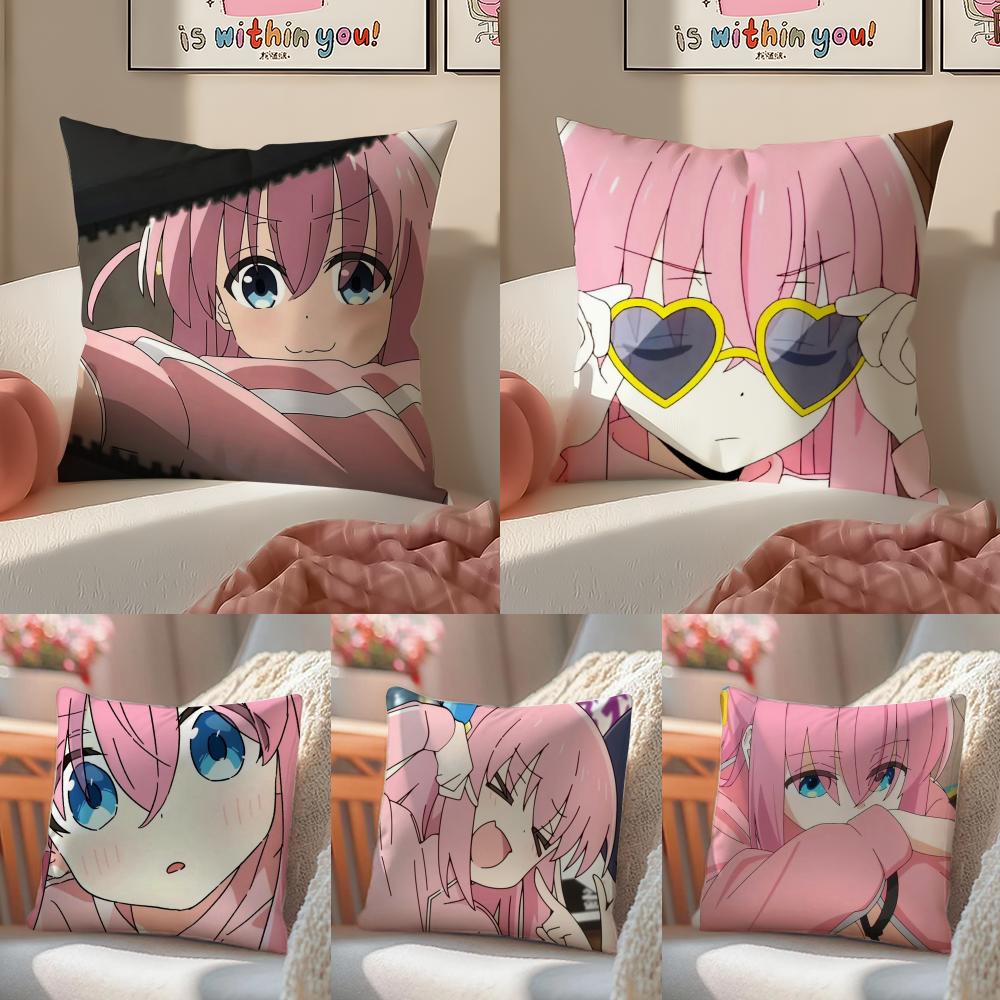 Retro Anime BOCCHI THE ROCK Cushion Cover Pillowcase Short Plush Invisible zipper Room Sofa Cushion Cover