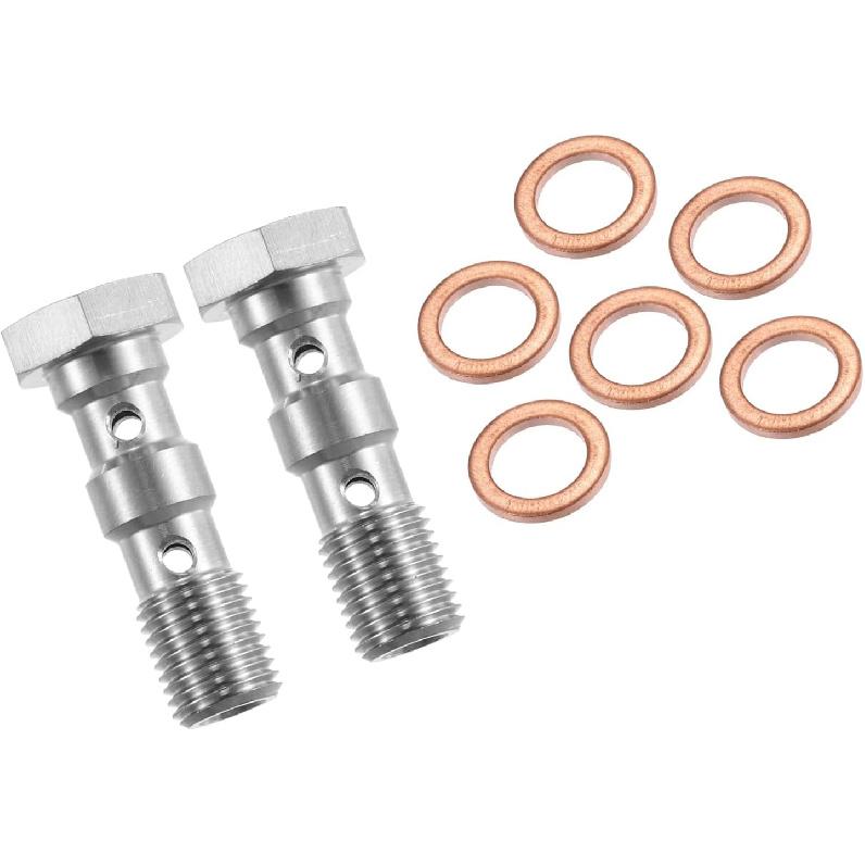 2pcs Stainless Steel AN3 3/8-24 Thread Turbo Brake Line Banjo Bolt with Copper Washers Double Banjo Bolt 31mm Length Replacement