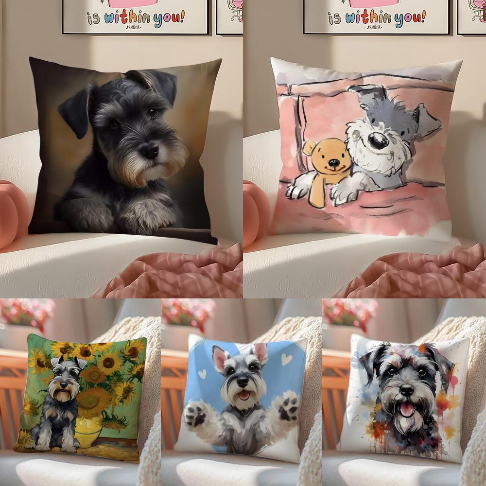 CUTE Miniature Schnauzeres Cushion Cover Pillowcase Short Plush Invisible zipper Room Sofa Cushion Cover