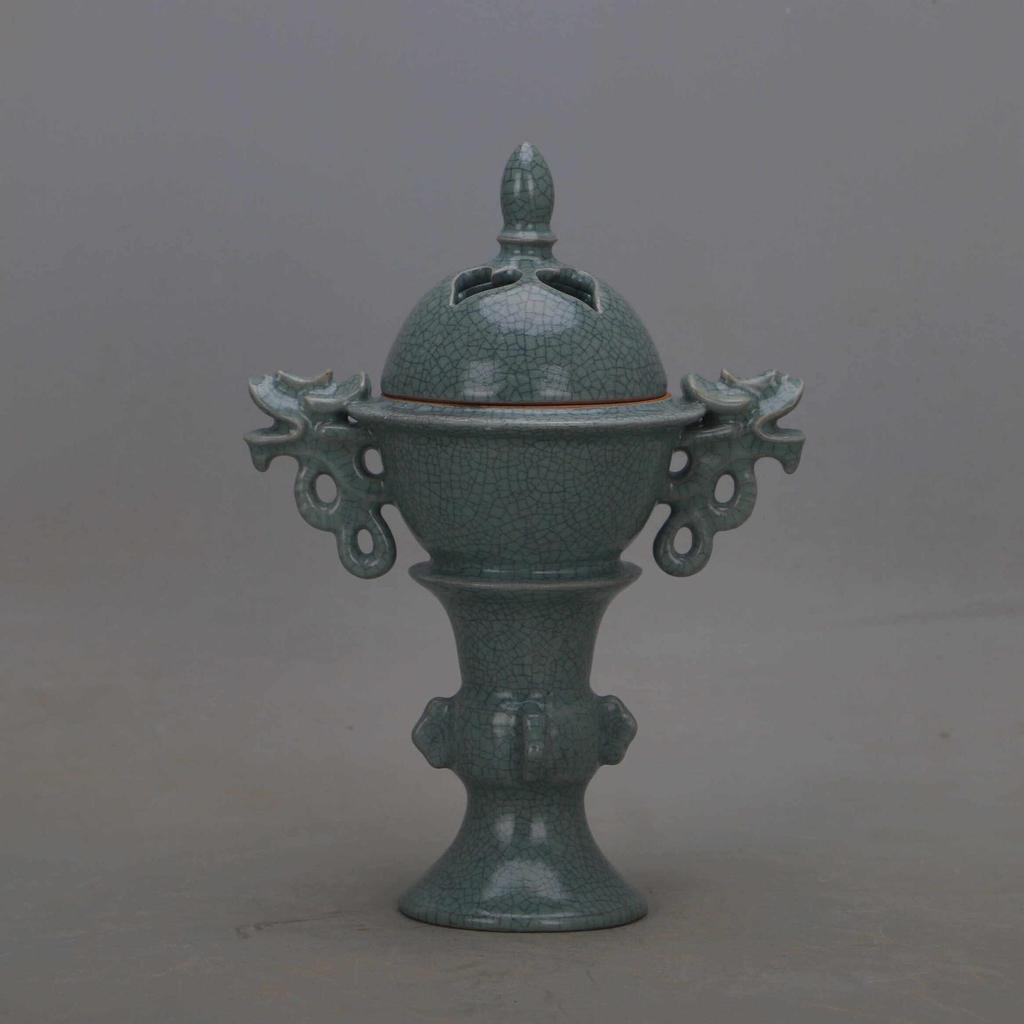 Song Dynasty Ru Kiln Celadon Double-Ear Dragon Incense Burner with Spur Marks - Antique Imitation Porcelain Collectible — купить товар онлайн с бесплатной доставкой по всему миру!