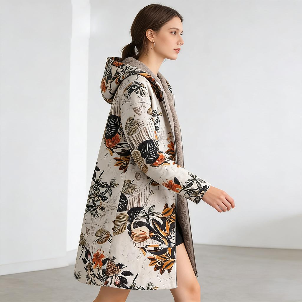 Печатные повседневные пальто большого размера Винтажные толстовки на молнии с длинным рукавом Женские пальто Повседневная женская теплая карманная куртка из флиса с цветочным принтом