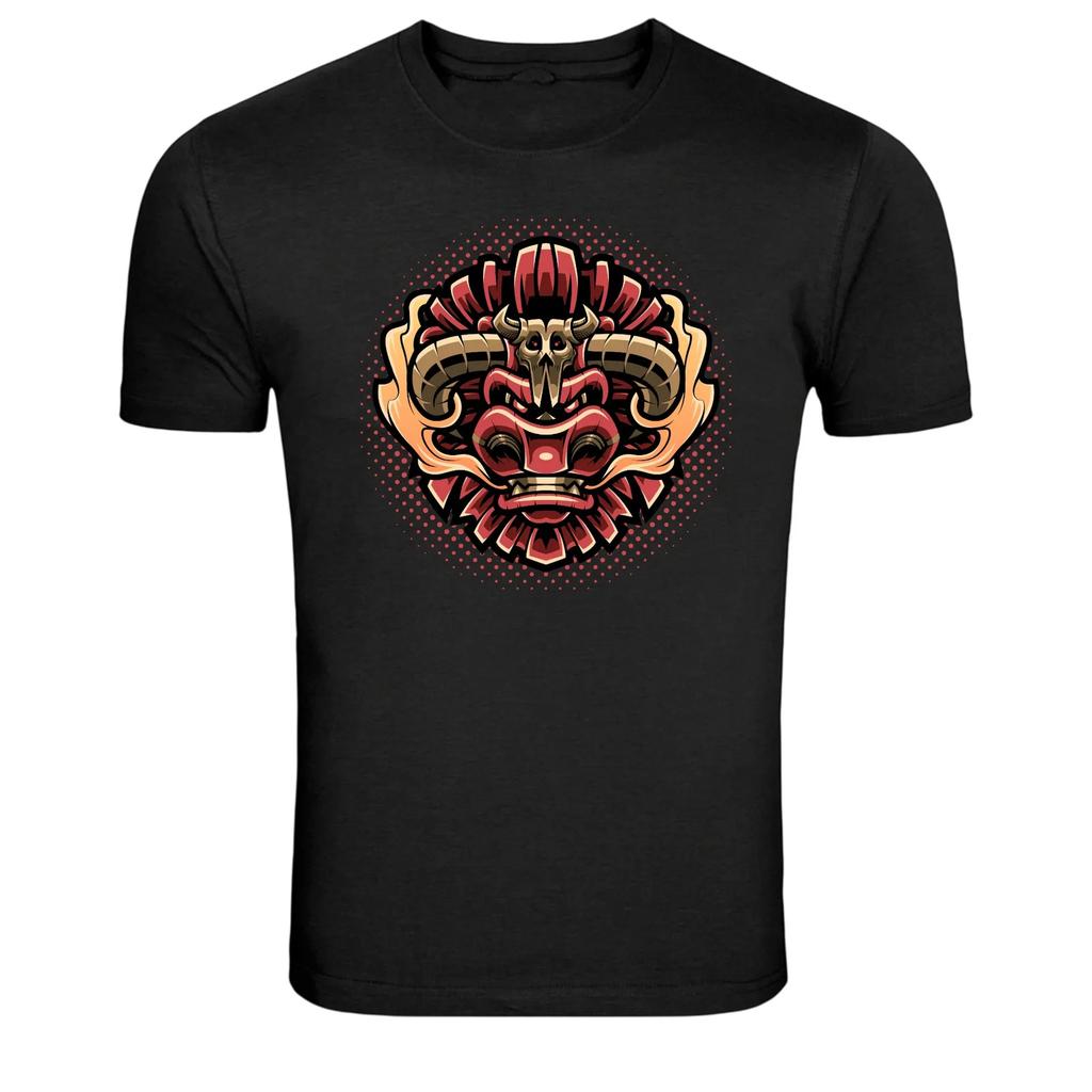 Tribal Demon Mask Graphic T Shirt Tiki Style Monster Tee
