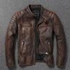 Новая кожаная куртка, верхний слой, одежда из 100% воловьей кожи, мужская одежда с воротником-стойкой, мотоциклетная одежда, осень-зима, большие размеры — купить товар онлайн с бесплатной доставкой по всему миру!
