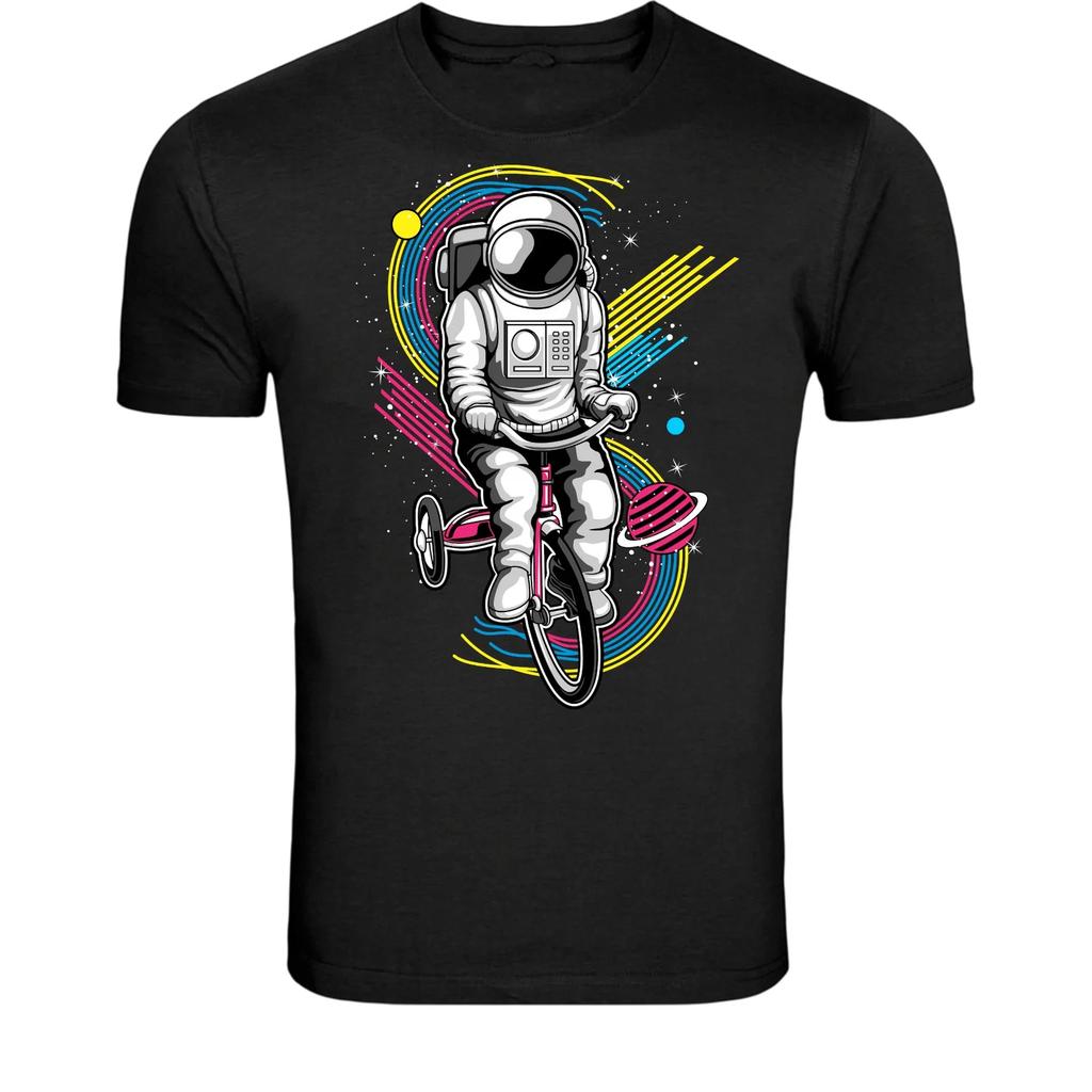 Футболка "Неоновый Астронавт на Трехколесном Велосипеде" - Ретро Космическое Приключение