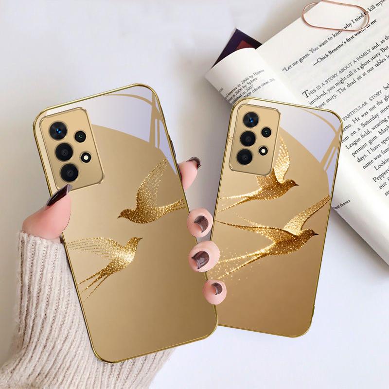 golden flying bird For Samsung A 01 52S A04 A05S A10 A12 A13 22 23 24 36 42 M02 Note 10 20Ultra 8 9 Golden glass phone case