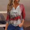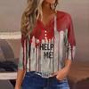 Женская модная повседневная футболка с принтом на Хэллоуин, V-образным вырезом, короткими рукавами, декоративными пуговицами и рукавами три четверти