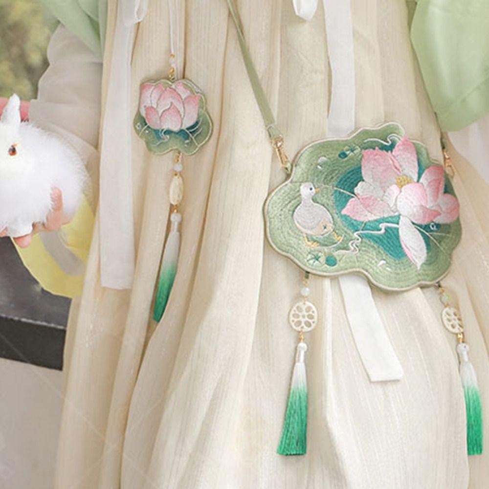 Сумка через плечо с вышивкой лотоса, стиль антикварный, ручная работа, китайская сумка в стиле Ханьфу, традиционная, элегантная, древний стиль, сумка-мессенджер