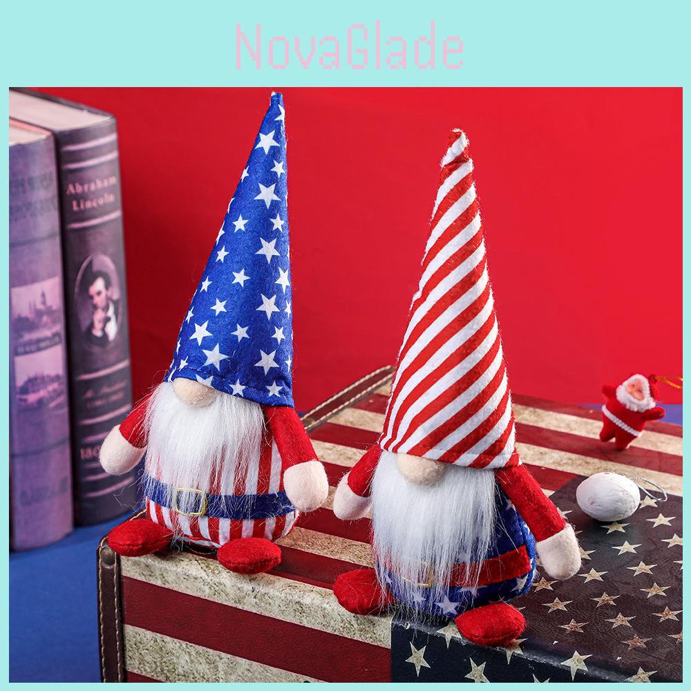 Креативное новое украшение ко Дню независимости, фигурка гнома Рудольфа в полосатой шляпе и шляпе со звездой для праздничных торжеств