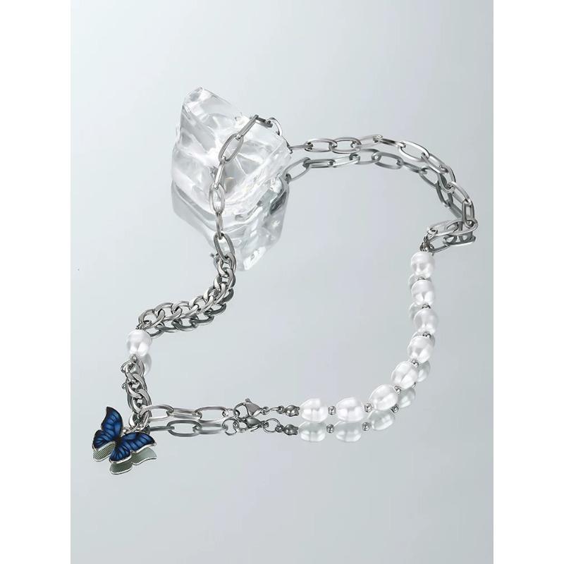 Butterfly pearl necklace female high sense personality hip hop neck chain niche simple versatile collarbone chain tide