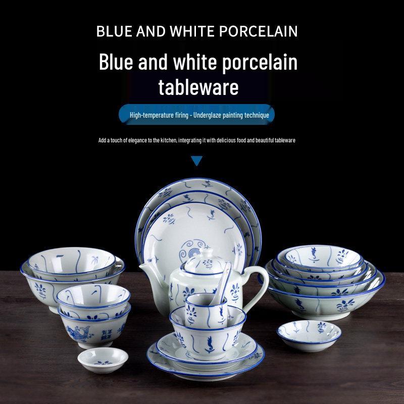 Винтажная керамическая сине-белая цветочная ваза с бамбуком - Посуда в деревенском стиле, идеально подходит для риса и лапши