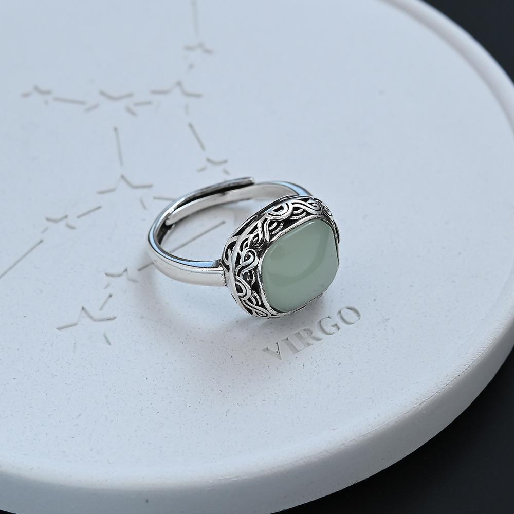 High-End Tangcao Flower Inspired Jade Ring: Elegant Chinese Court Style for Women