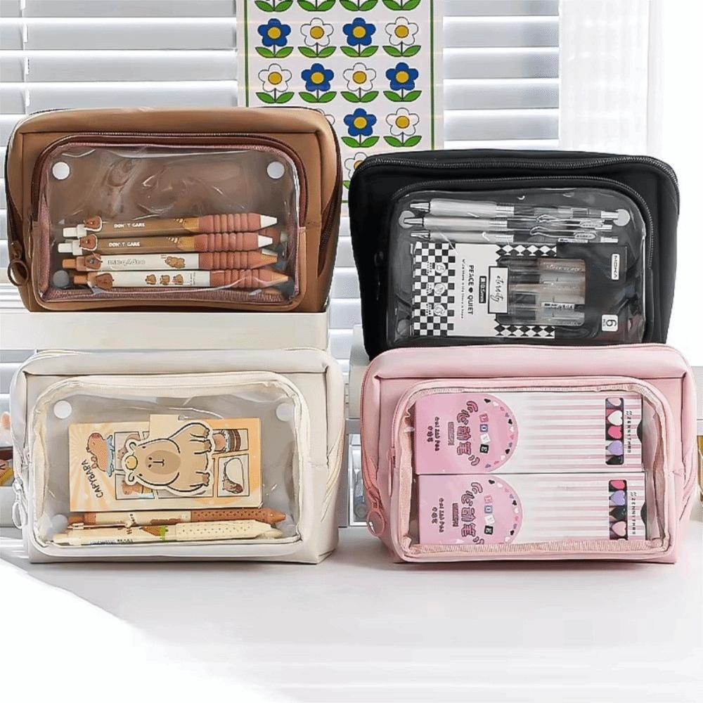 Large Capacity Transparent Pen Bag DIY Stationery Box Cute Transparent Pencil Case Office