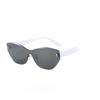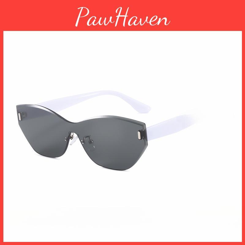 This unisex cat-eye sunglasses feature a frameless design with gray polarized lenses and black frames. Made of durable PC material, they offer UV400 protection and resist scratches. Perfect for sun protection, outdoor outings, or stylish everyday wear, these glasses support easy maintenance with a simple wipe of a damp cloth.