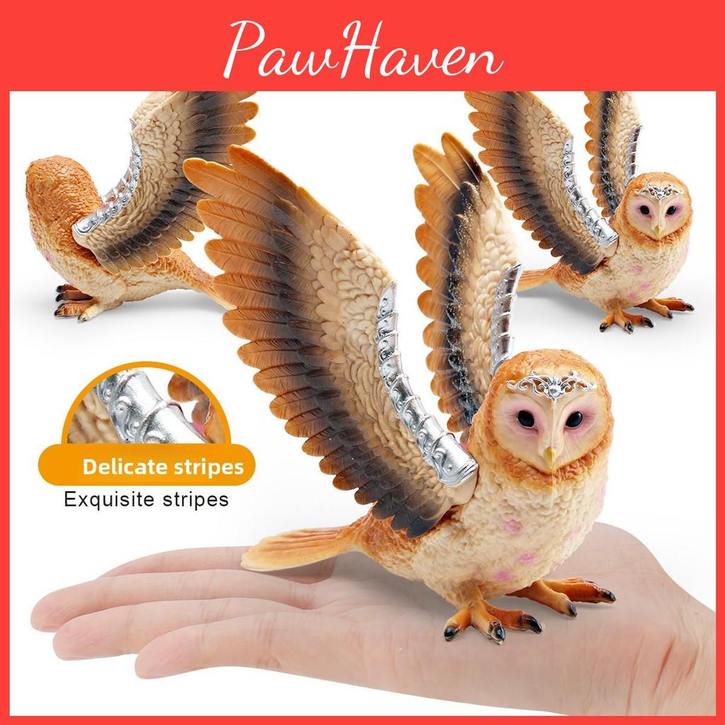 This realistic animal model depicts a flying owl, crafted from durable PVC material for lasting use. supporting detailed display and educational purposes. The static figure offers precise features without assembly, ideal for childrens cognitive learning and collection. Easy to clean with a damp cloth, it suits display in bedrooms, classrooms, or play areas.