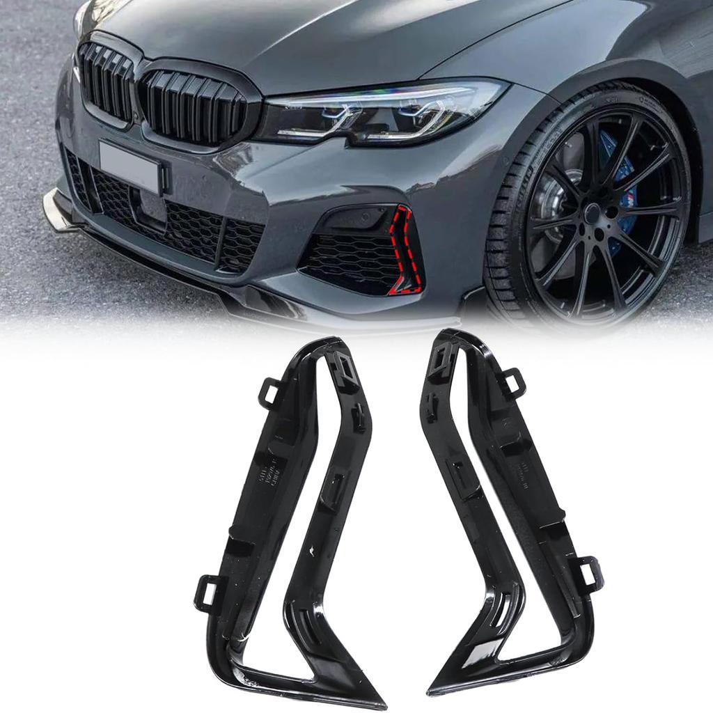 SecosAutoparts Pair Front Bumper Side Grill Trim Set, Glossy Black, Fit for BMW 3 Series G20 G21 M340i 2018-2022 3.0L l6, Replace# 51118093301