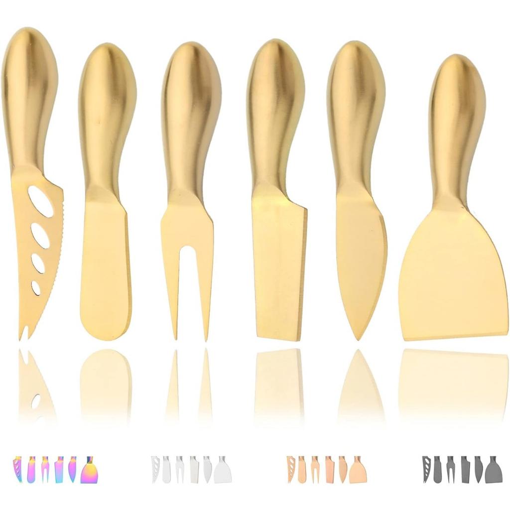 6pcs Matte Stainless Steel Cheese Knife Forks Set for Slicing Cutting Spreading Mini Butter Knives Dishwasher Safe — купить товар онлайн с бесплатной доставкой по всему миру!