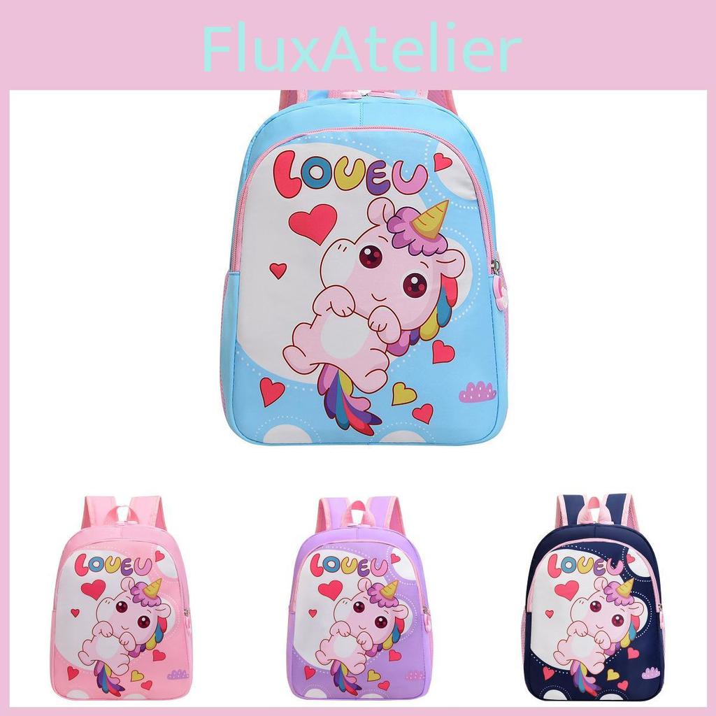 Cute Cartoon Unicorn Print Kids Backpack Large Capacity Breathable Nylon Schoolbag