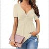 Новая женская, рубашка с вырезом на шее, короткий рукав, элегантная повседневная рубашка, однотонный пуловер