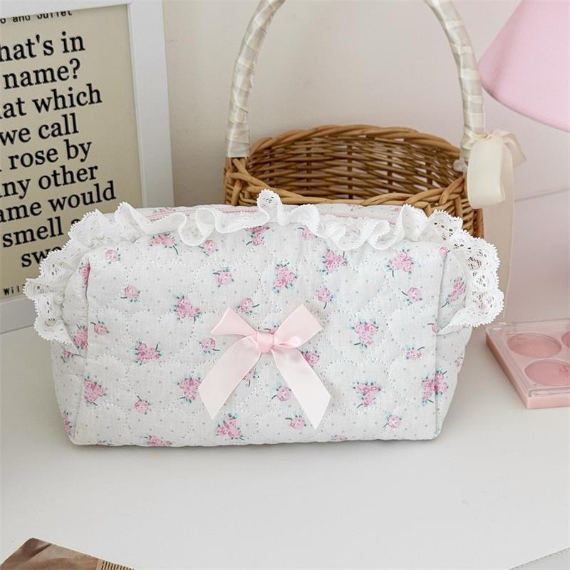Милый медвежонок, сладкое сердце, бант, розовое кружево, косметичка, большая вместимость, портативная дорожная сумка для хранения, женский клатч, девчачьи косметички