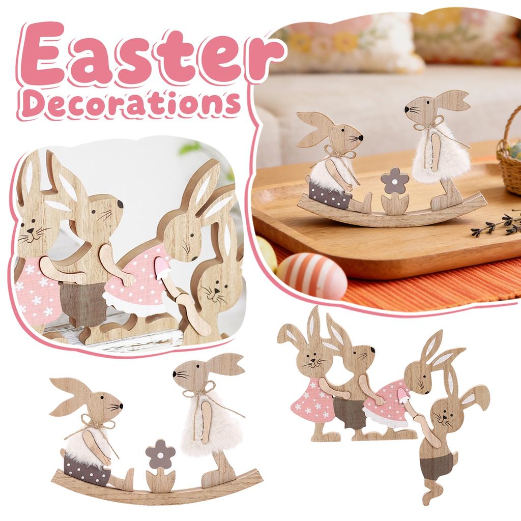 Hand-in-Hand Wooden Bunny Ornament, Tabletop Bunny Teeter Totter Decor, Rabbits Decor Gift For Home,Offices,Easter Decorations Description: [Bunny Art]You will receive a hand in hand rabbits ornament door frame decoration and a teeter totter bunny decoration! single to put together, let this several cute bunny boys and girls stand in a corner of your home, it will present a very cozy decorative effect [Elaborate Craftsmanship]This rabbits wall decor is made of wood material, which is friendly, sturdy and not easy to deform. No burrs the edges. HD spray paint process makes the pattern lifelike, adding a touching of bright color to the home environment [Decorations for Home]This wooden rabbits decoration can be used to decorate doors, walls, corners, window-s, sills, tables, bookshelves, dining tables, display, counters, and more. Create a -festive atmosphere [Easter Decor]Not just does the fun bunny look fit the Easter theme, you can easily DIY any corner of your home! Bunny door corner decorations can easily create your holiday atmosphere and will be admired by whoever sees it [Funny Gifts]Bunny door corner decorations are exquisitely made, making them a great gift for any family, friends, or colleagues for holidays, anniversaries, Easters, housewarmings, newlyweds, Thanksgiving, Mother's Day, etc Specification:a Material:wood Note: There might be 2-3cm errors of dimension data due to manual measurement. There might be slightly color difference due to different light and monitor effect. Package includes: 1* Ornament