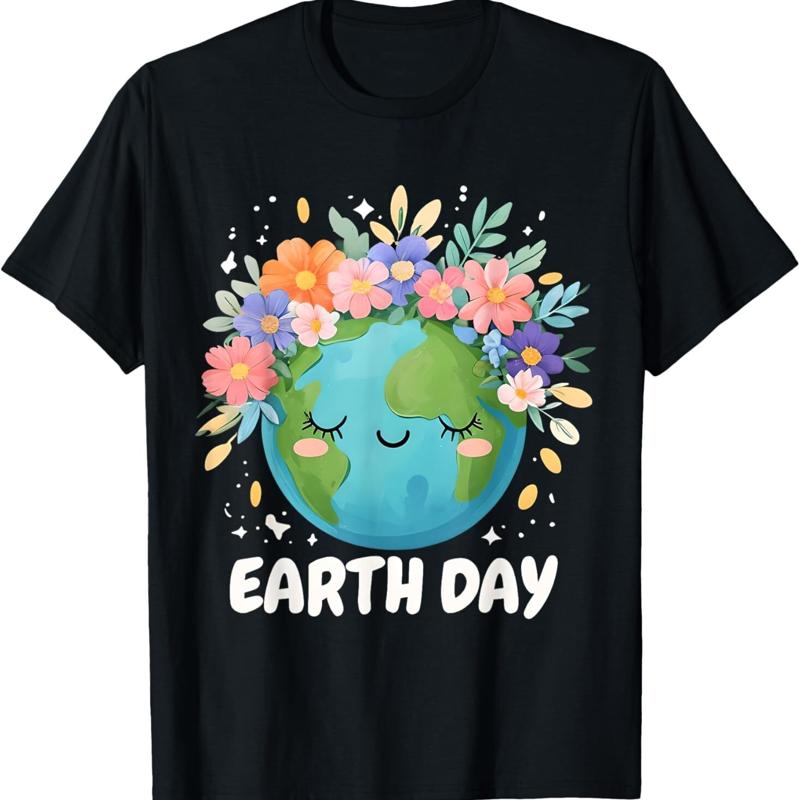 Футболка ко Дню Земли Милая Цветочная Планета 2026 Лето Новая С Круглым Вырезом Принт Планеты Футболка Женская Харадзюку Рукав Повседневная Эстетичная Одежда