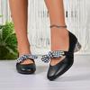2026 New Women's High Heels Elegant Mid-heeled Pumps Fashion Plaid Bowknot Elastic Strap Mary Jane Shoes Leather Lady Heels — купить товар онлайн с бесплатной доставкой по всему миру!