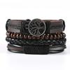 4 шт./комплект Плетеные кожаные браслеты для мужчин Винтажный браслет с подвеской Древо жизни Руль Деревянные бусины Этнический браслет на веревке