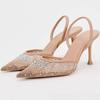 Летние женские босоножки со стразами, яркие, сетчатые, на высоком каблуке, элегантные, с открытым носком, с острым носком, туфли-лодочки для вечеринки