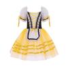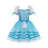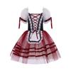 Girls Puff Sleeve Layered Tutu Dress Lace Trim Velvet Bodice Lace Up Back Ballet Costume