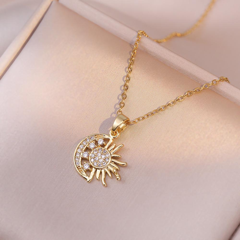 Нержавеющая сталь Микропаве Подвеска Солнце Луна Ожерелье Мода Легкая Роскошь Кубический Цирконий Цепочка-ожерелье для Женщин Свадебные Украшения
