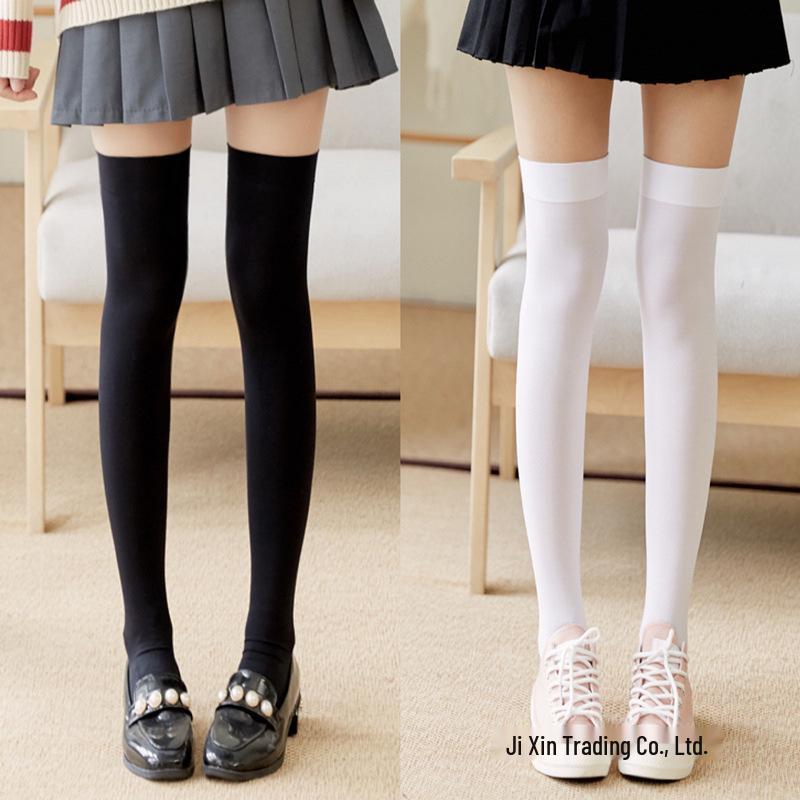 Бархатные гольфы до бедра - Черно-белый шелк, Сексуальный стройнящий стиль JK