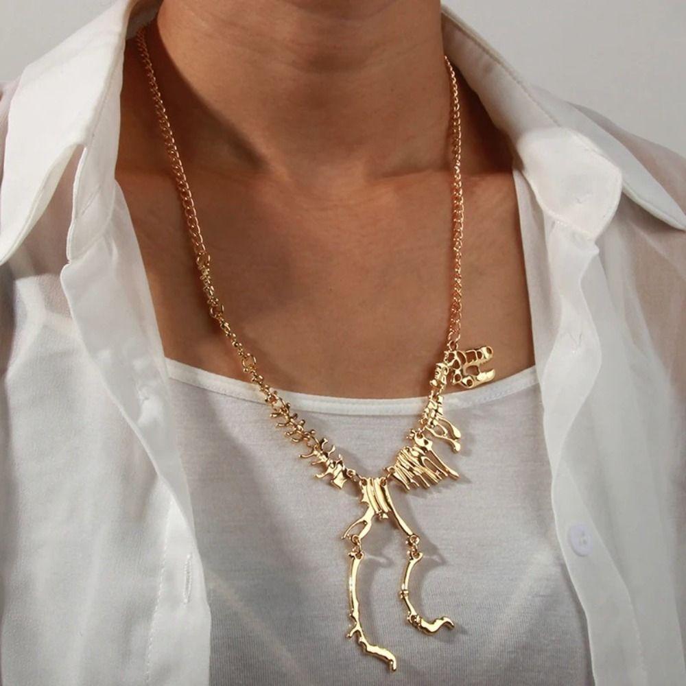 Панк-ожерелье-чокер с цепью Тираннозавра Готическое ожерелье с драконом Хип-хоп ожерелье с скелетом динозавра для девочек