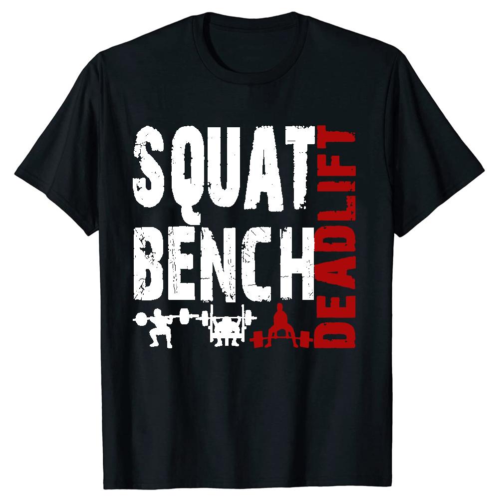 Powerlifting Squat Bench Deadlift Weightlifting T Shirts Cotton Humor Tee Shirt Short Sleeve Unisex Loose Crewneck Clothing
