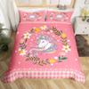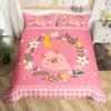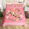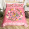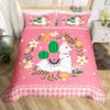 Comforter Kawaii Rabbit Cartoon Animal Bedding Set Geometry Grid Checkered Comforter Colorful Flowers Butterfly Bed Set