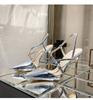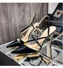 2026New Spring/Summer Silver Lacquer Leather Cross Button Strap Pointed Thin Heel Sandals for Women Sexy High Heel Single Shoes