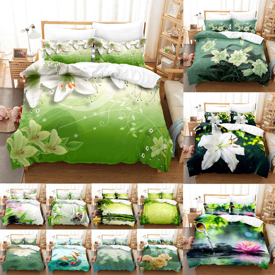 Comforter Green Flower Double Bed With Lotus Bedding Set King Size 3Pcs 2Pcs Single Twin Full 200X200 220X240Cm