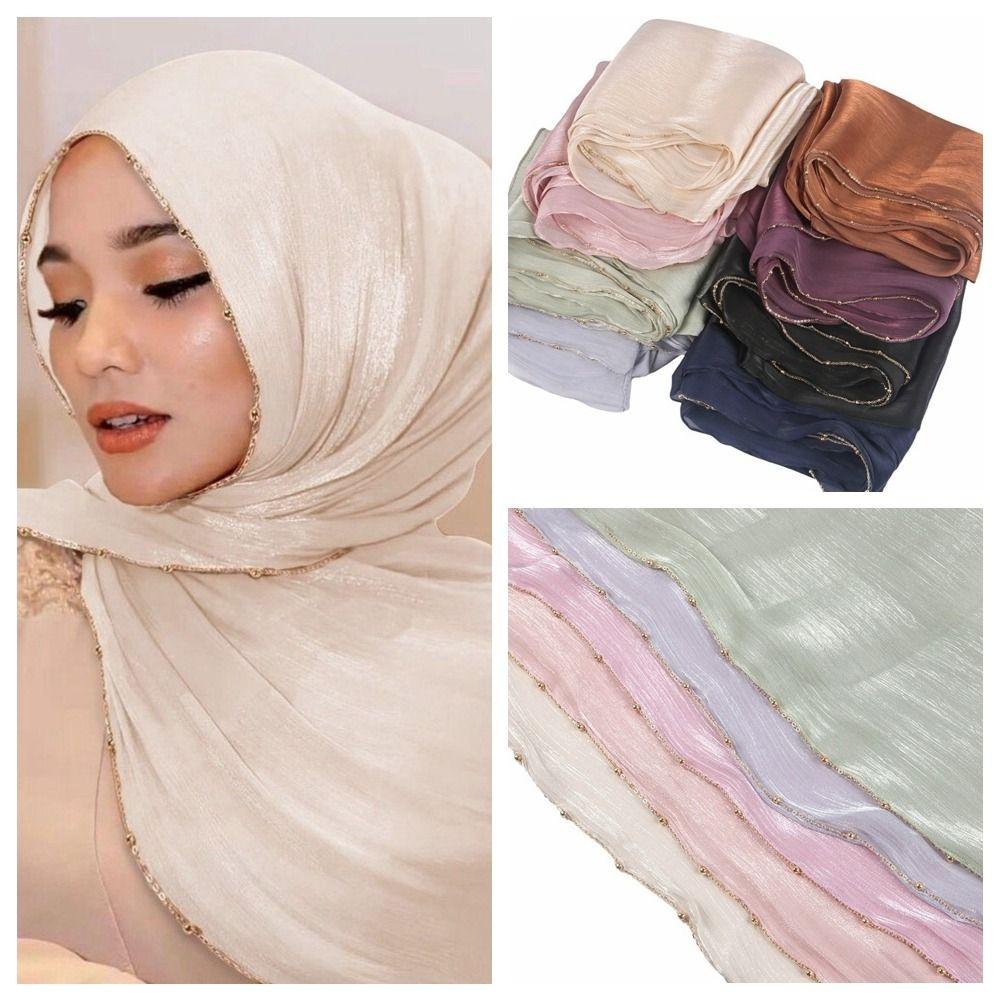 Длинный платок-хиджаб с цепочкой из бусин, исламский тюрбан, модный этнический шарф для женщин