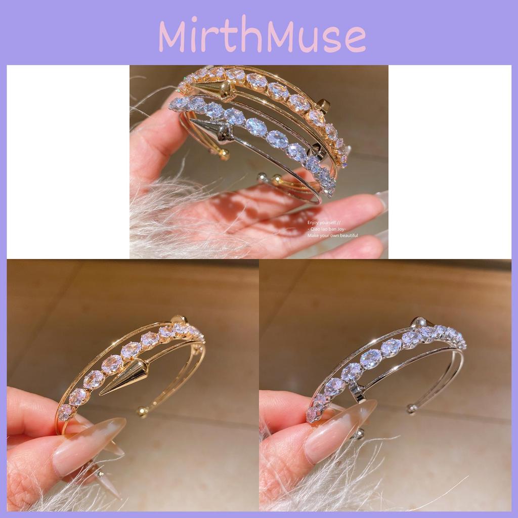 This multi-layer zircon-studded cuff bracelet features a sleek circular design crafted from durable copper. Available in gold and silver tones, it measures approximately 2 inches in diameter, offering an elegant yet lightweight accessory. The bracelet's geometric elements add a modern touch, perfect for daily office wear or stylish outings. Wipe clean with a soft cloth to maintain its shine.