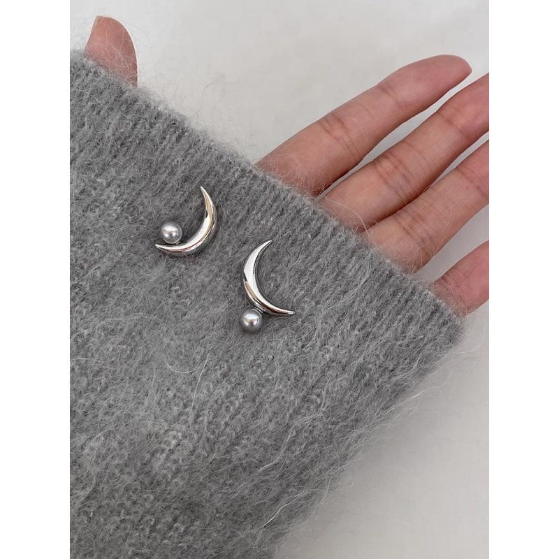 Ash Crescent Cool Grey Pearl Moon Stud Earrings for Women - Trendy and Chic Ear Accessories 2026