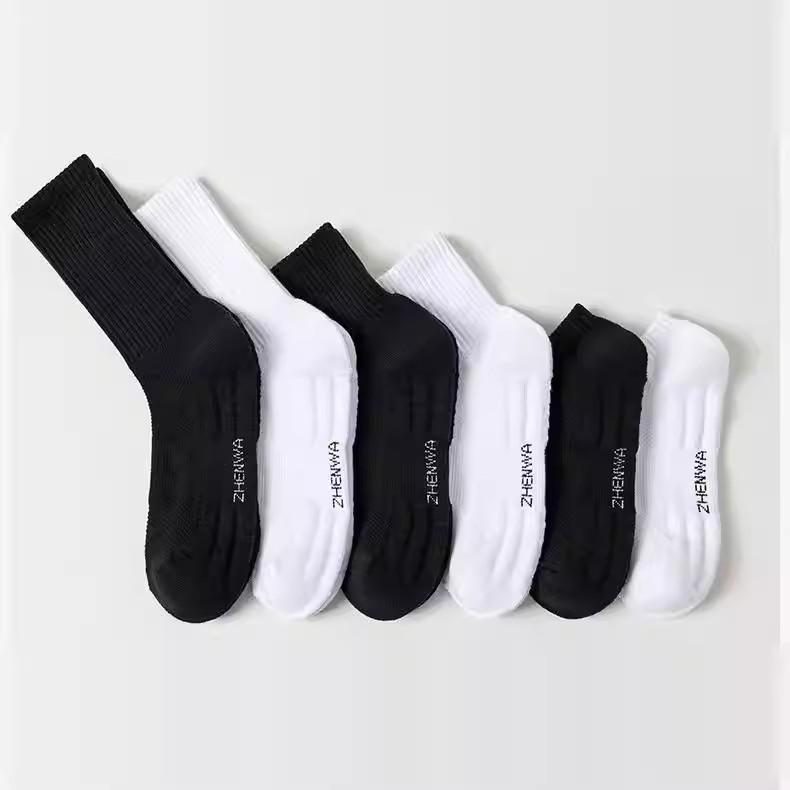 Черно-белые однотонные спортивные носки: Амортизирующий, простой и универсальный для баскетбола и бега.