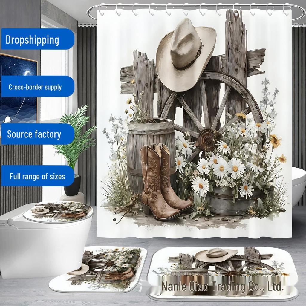 Дизайн «Фермерский рынок» 4-предметный набор штор для ванной комнаты с 12 крючками, Декор для дома в деревенском стиле