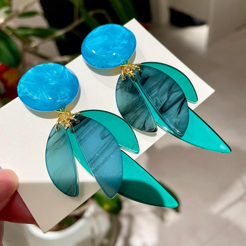 Handmade Pop Art Blue-Green Leaf Stud Earrings for Women — купить товар онлайн с бесплатной доставкой по всему миру!