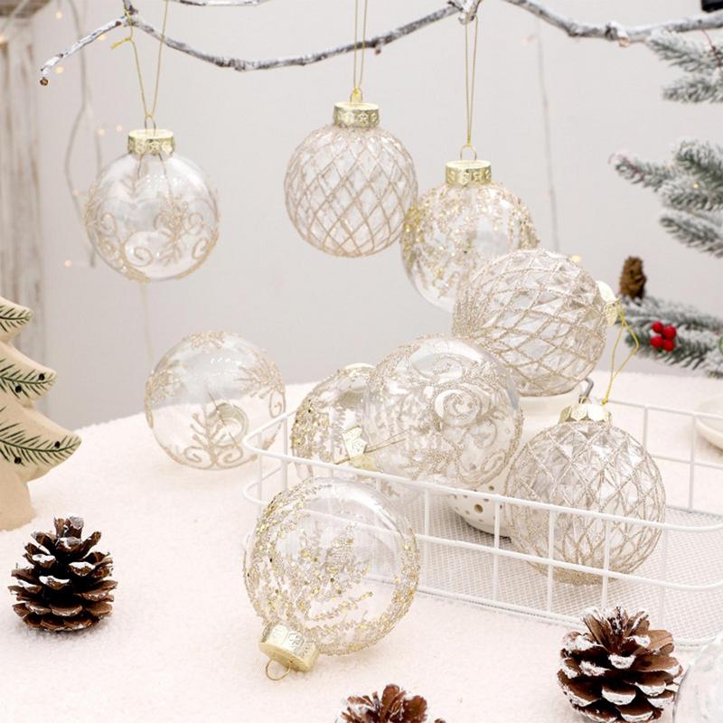 Christmas Balls Shatterproof 9 Pieces Christmas Decoration Ball Clear PET Globe 3.15in Painted For Birthday Thanksgiving Winter