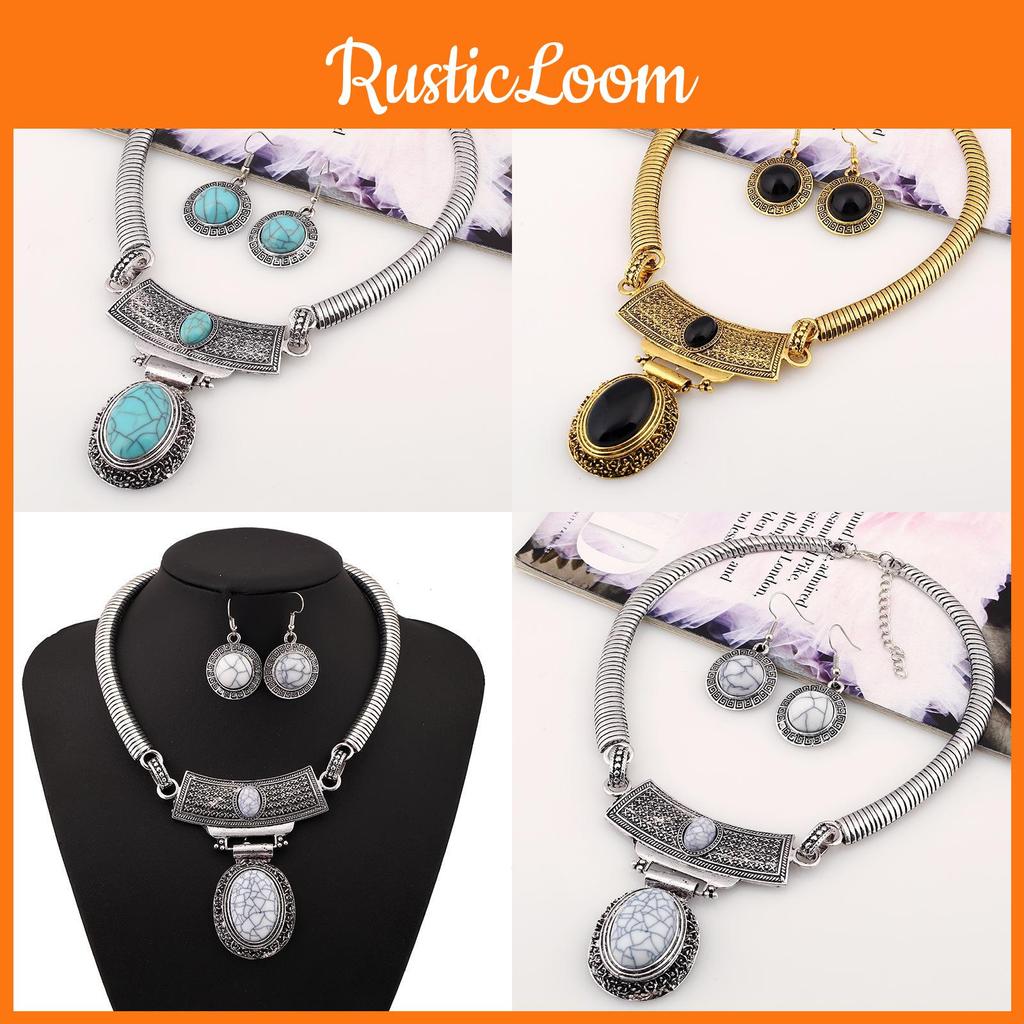 Этнический стиль, имитация драгоценных камней, женский набор из колье и серег, для мужчин и женщин