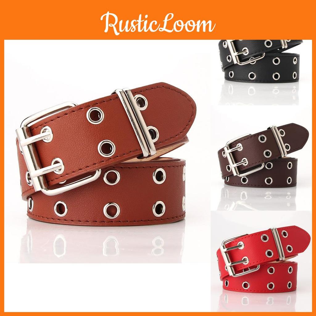 Модный кожаный ремень для женщин с двойными глазами выхлопных труб и декором с заклепками для повседневной и офисной носки — купить товар онлайн с бесплатной доставкой по всему миру!