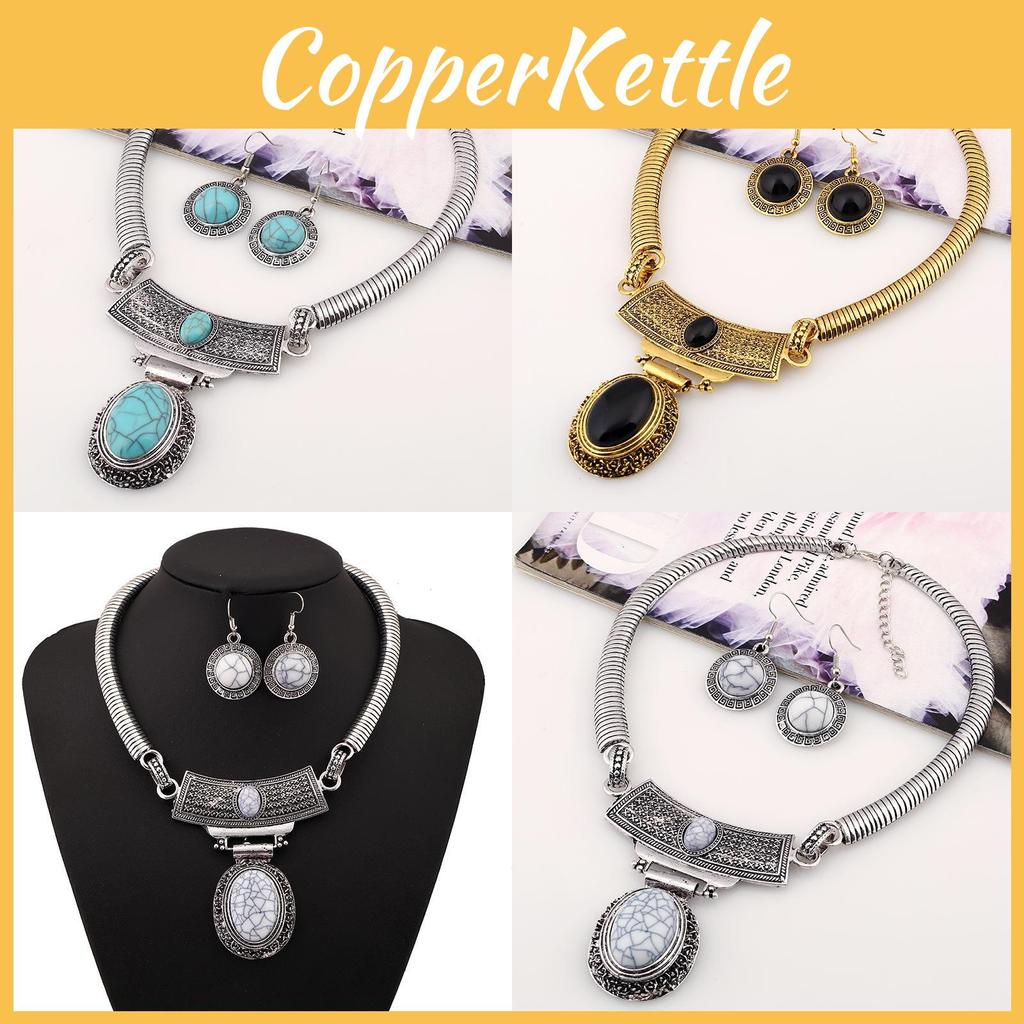Этнический стиль, имитация драгоценных камней, женский набор из колье и серег, для мужчин и женщин
